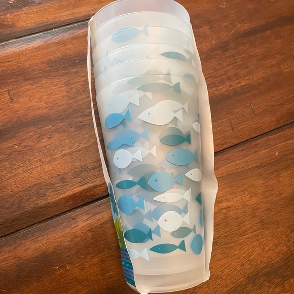 Set of 6 plastic outdoor tea glasses Fish on the outside 32oz New in package