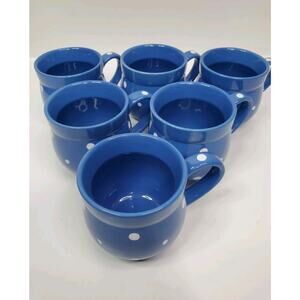 6 Temp-Tations Polka Dot Cups 12 oz Mugs Temptations By Tara Blue Dots