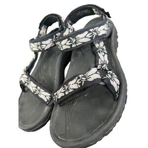 6 Teva Women's Hurricane 4 Sport Sandals Black White Floral Adjustable