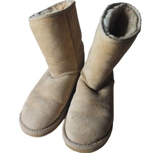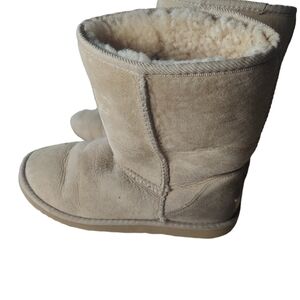 6 UGG tan boots They are in great condition. Our shoes are preloved and so they may have little ware. Please check out the pictures. In a smoke free and pet free home. very comfortable shoes. Same day or next day shipping.**don't hasitate to make an offer***