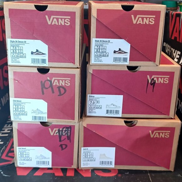 6) new Vans boxes in good condition, some may show minimal shelf wear, exact ones as pictured