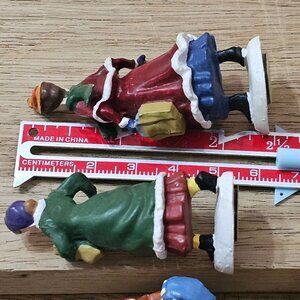 6 Victorian Porcelain Magnetic Skating Figurines Hand Painted Christmas Village