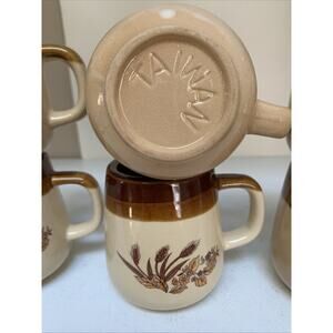 6 Vintage 70’s Country Brown Wheat & Flower Stoneware 10 oz. Coffee Mugs Taiwan