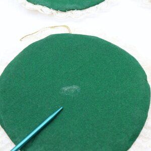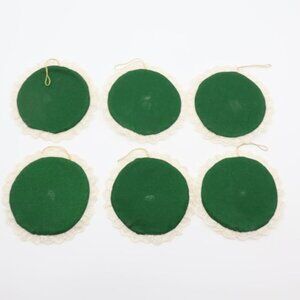 Up for your consideration are six vintage cross stitch Christmas ornaments. Felt backing, lace trim, gold colored hook.