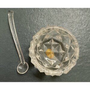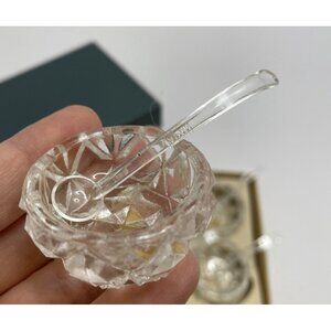 6 Vintage Clear Glass Salt Cellars & Plastic Spoons Original Box Japan - NEW