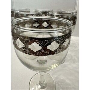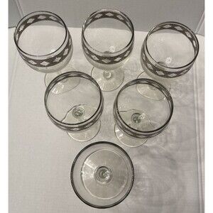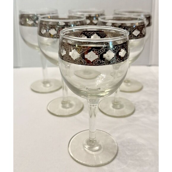 6 Vintage Culver Valencia Silver Band Small Wine Glasses, 5 3/4" Tall Boxed
