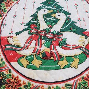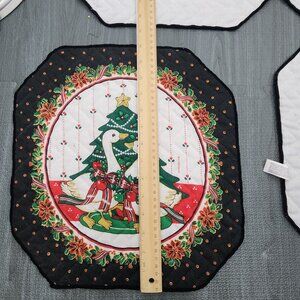 6 Vintage Franco Holiday Christmas Cloth Placemats Ducks Geese Swan Cotton Tree