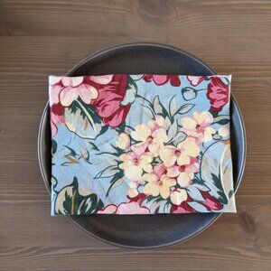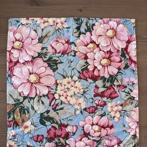 6 Vintage Handmade Cloth Napkins - Romantic Floral Print on Blue Background