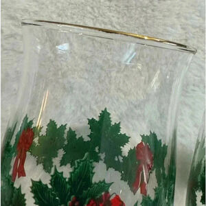 Vintage Libbey Christmas Holly Berry Wreath Garland Red Bow Glasses Gold Trim Set of 6 vintage drinking glasses. Some wear to gold trim on glasses but otherwise in nice vintage condition. See photos for measurements. Smoke & pet free home. I have a lot of vintage & vintage holiday items in my closet. Bundle to save!