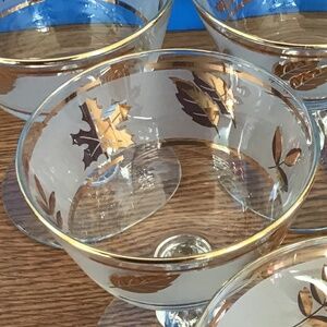 6 Vintage Libbey Frosted Glass Gold Leaf Pattern Glasses Elegant