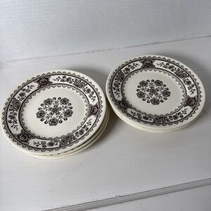 Set of 6 beautiful Royal China Hampshire USA brown 6.5"bread/dessert plates. This lovely cottage style plates are in excellent condition, and the details in this pattern are beautiful. Please see photos for details.