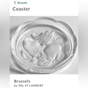 6 Vintage Val St Lambert Glass Coasters Brussels Pattern Intaglio Belgium 3.5"