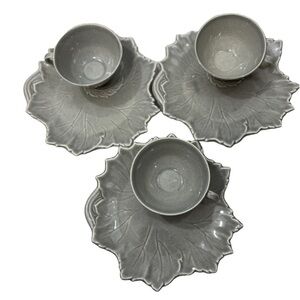 6 Vintage Woodfield by Steubenville Snack Sets Leaf Plates Cups 3 Gray 3 Green.