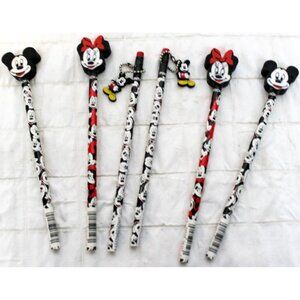 6 Vtg 90s Pentech Disney Minnie Mickey Mouse Pencils Erasers Charm Unsharpened