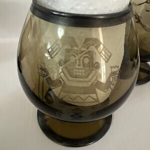 6 Vtg Smoked Smoke Glass Glasses Snifter Brandy Scotch Cognac Bar Peru Mayan