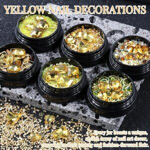 6 Wheels Mixed Sparkle Nail Art Rhinestones Diamonds Crystals Yellow