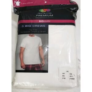 6 White Big Man 2XB 50-52 Inch Crew Neck T-Shirts Fruit Of The Loom Big & Tall