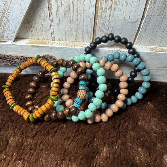 6 Wooden Beaded Bracelets handmade exquisite colors that pop unisex