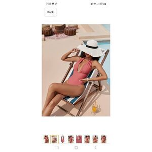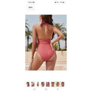 Good Used Condition Women's Size Medium (According to the manufacturer Fits Size 6) Zaful Manufacturer calls it a Brick Red (In My Opinion its a Pinkish Mauve) Halter Neck Tie Deep Plunge V-Neck One-Piece Swimsuit Bathing Suit Swimwear- Has Removable Pads
