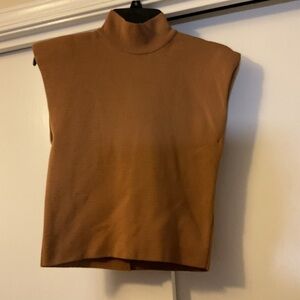 Upgrade your wardrobe with this stylish Zara brown structured short sleeve crop top with shoulder pads in size M. The high neck and cap sleeves add a touch of sophistication, while the zipper closure and solid pattern make it perfect for any occasion, whether it's for travel, a party/cocktail, or even casual outings.