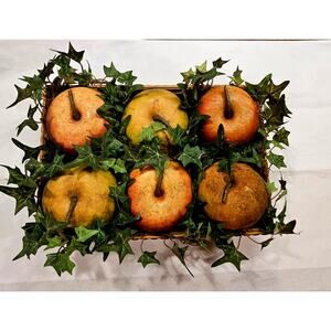 6 apples in a box, vines, home fall decor, wall, table 9x6x2