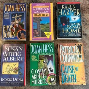 Collection of six mystery and crime novels with colorful covers. Perfect for book lovers.
