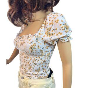 (6 for $25) Heart & Hips Smocked Floral Princess Sleeve top Size Medium