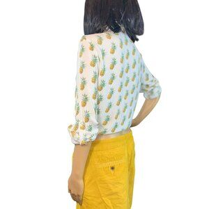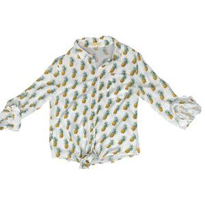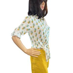 (6 for $25) Love Notes Button Down Tie Frontβ Shirt in Pineapple Print-Medium
