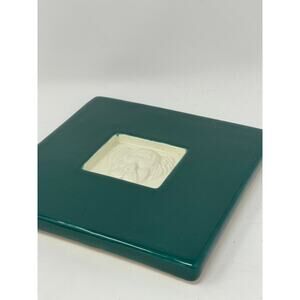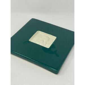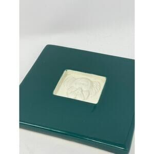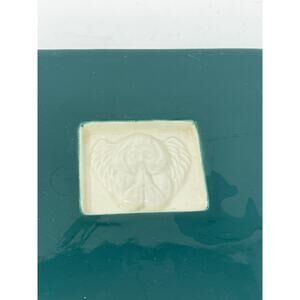 6 inch CERAMIC TILE TRIVET TREASURE CRAFT GREEN & WHITE W/ ANGEL CHERUB