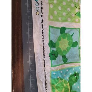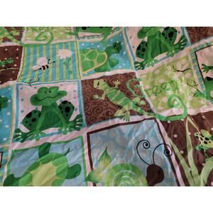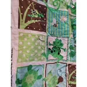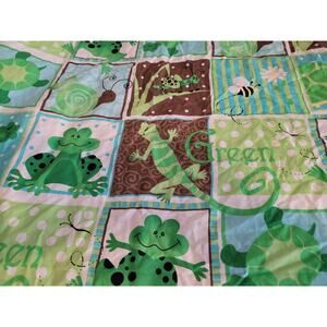 The product is a 4-yard piece of cotton fabric by Fabric Traditions, featuring a pattern of frogs and a theme of frogs. The fabric is from the 2009 Laurie Campbell La-di-draw collection, with a green color scheme. This material would be ideal for crafting projects that involve creating items with a frog-related design, such as quilting, sewing, or other crafts.