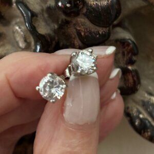 6 mm Cubic Zirconia Diamond earrings set in Sterling Silver