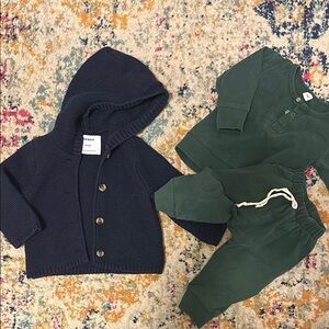 6-12 month Old Navy knit sweater with hood and buttons - navy blue (like new)