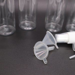 6 pack spray bottles, 4 oz. 100ml clear empty fine mist plastic bottles with funnel new