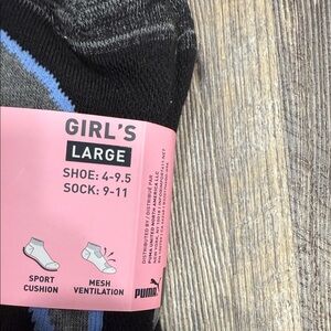6 pairs Puma girls Athletic Socks - Black with Green and Blue Stripes