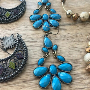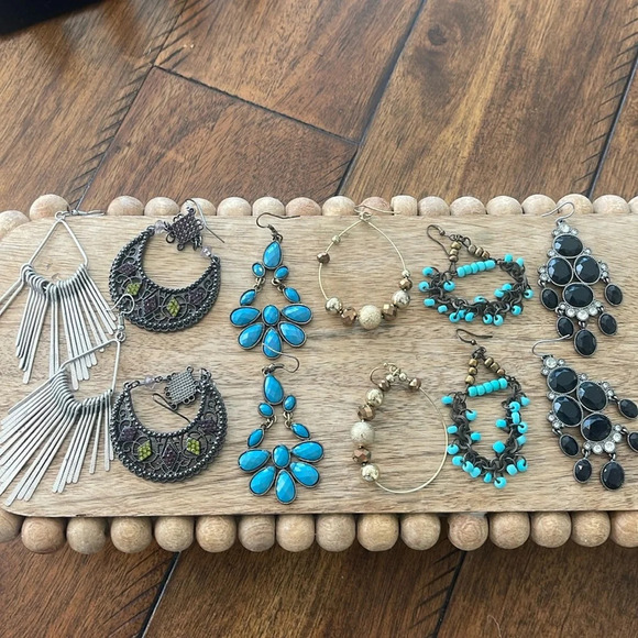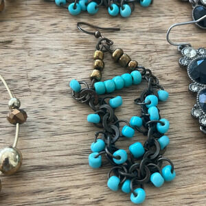 6 pairs bundle fashion earrings dangling drop hoops silver gold green black