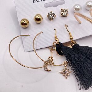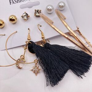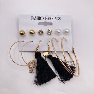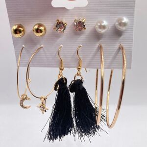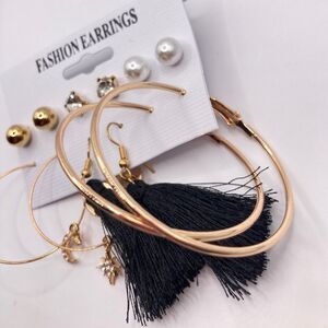 Women’s female 6 pairs of stud dangle hoop earrings boho style. tassel dangles and faux leather dangle earrings New with tags