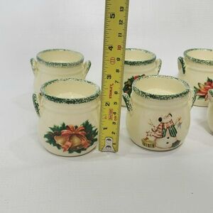 6 pc Ceramic/Porcelain Christmas Poinsettia Milk Jug Tealight Candle Holders.
