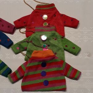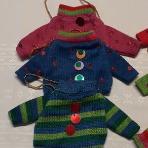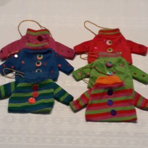 Set of 6 sparkly sweater ornaments to decorate your tree or add as a gift tag on any package. Add a candy cane, or something fun, and create a fun way of gifting a friend, child, grandchild, etc. These can be used all winter in fun ways.