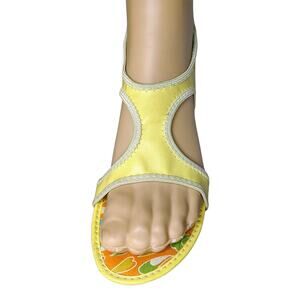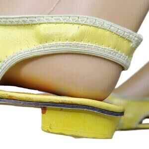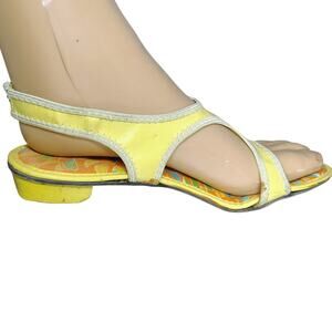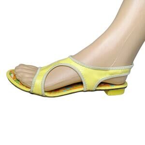 60 - 70s Yellow Flower Power Bohemian Era Sandals Low Heel Cut Out Design SZ 6.5