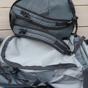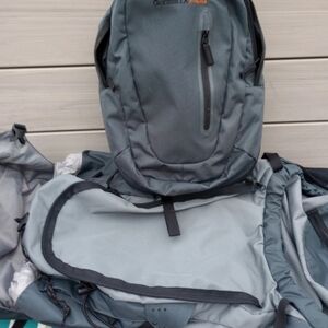 Never used , tags still on. Guerilla Pack is 50 L plus 10 . The front is a small day pack that unzips and you can use seperate or leave it for a 60L. In great condition and everything works. No snags, tears or stains