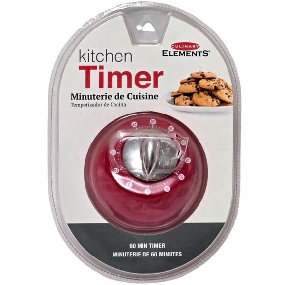 60 Minute Red Kitchen Timer by Culinary Elements (New Sealed Package)