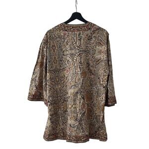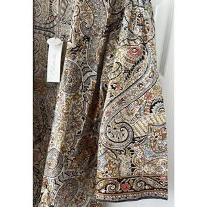 Color: Paisley print with beautiful hues of brown, blue, etc., on a beige background.