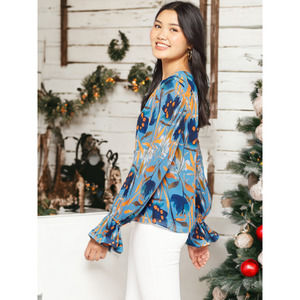 Milly Greer LUXURY Watercolor Azalea Top in Blue/Multi Long Sleeve Button Down Shirt Beautiful Perfect for Resort Wear Too ~