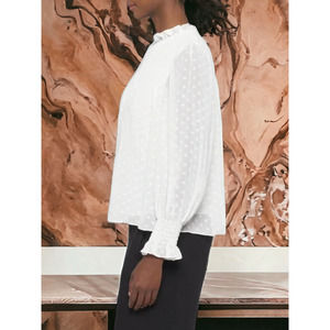 (60% OFF) NWT Rebecca Taylor Women's Clip Dot Silk Blouse Snow L MSRP: $325