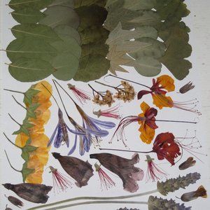 60 PCS Variety Pressed Flowers Leaves Leaf Peacock Mallow Lily Lavender Bottle B