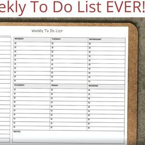 This simple weekly to do notepad is fantastic to have around to make a note of tasks that need completion while working on something else to avoid relying on memory. A checklist style task list with checkboxes to indicate completion. Great to keep life more organized and manageable! Keep focus.