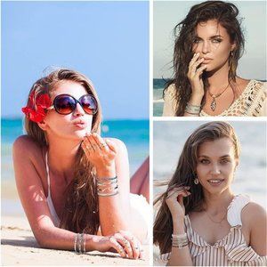 🧿Universal size: each chain choker necklace and beach surfer strand wave bracelets are adjustable, suitable for most people without worrying that the sizes may not be appropriate; The rings come in many different sizes, suitable for most women and girls