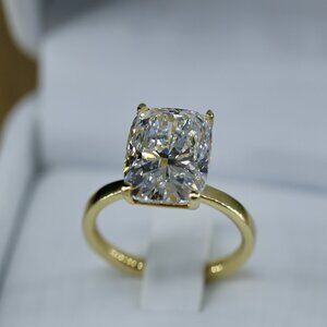 ✨ Elegant. Timeless. Powerful. This 6.00 carat rectangular cushion cut lab grown diamond radiates with exceptional brilliance and balance. Expertly crafted by hand in Los Angeles, it features a classic four-prong solitaire design in warm 14k yellow gold — the ultimate expression of refined simplicity and modern luxury.