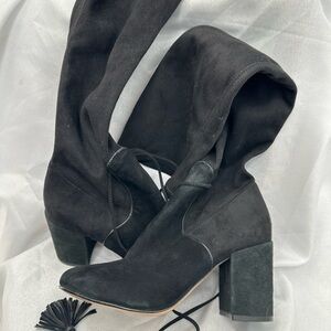 $600+ RACHEL ZOE Robin Tall Suede BLOCK Boot WRAPAROUND TASSEL BLACK Sz 6.5