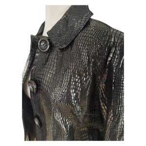 600 WEST Women’s Black Genuine Leather Blazer Jacket Size S Crock Print